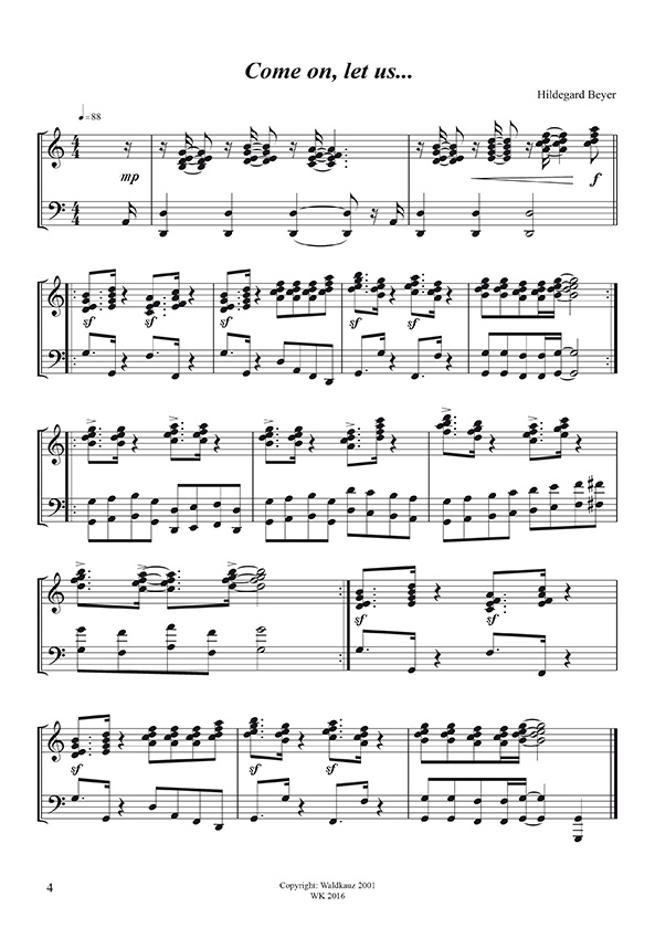 Besonders möchte ich mich bei Achim Fräsdorf und meinen Schülern bedanken, die mich immer wieder aufgefordert haben, weitere Stücke zu schreiben und an der praktischen Ausführung viel Spaß hatten.