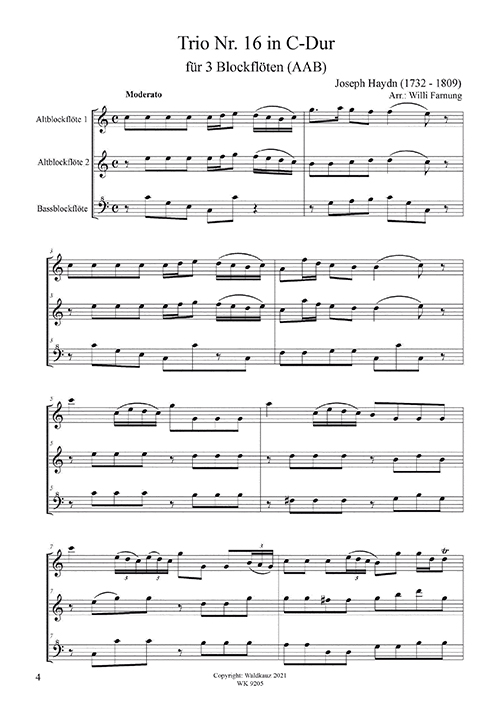 Preview: Haydn, Joseph - Trio Nr. 72 in F-Dur  für 3 Blockflöten (AAB)