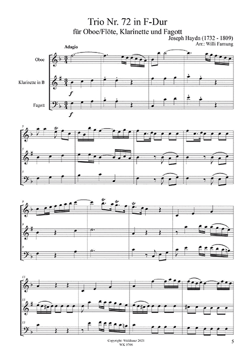 Haydn, Joseph - Trio Nr. 72 in F-Dur für Oboe/Flöte, Klarinette und Fagott