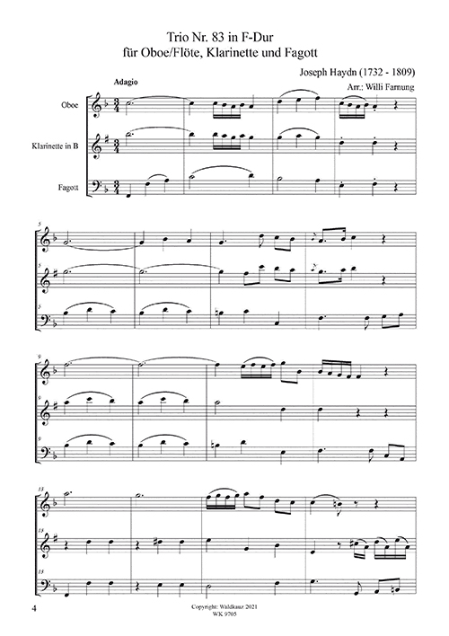 Preview: Haydn, Joseph - Trio Nr. 83 in F-Dur  für Oboe/Flöte, Klarinette und Fagott