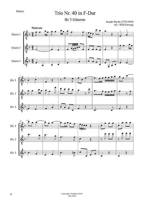 Preview: Haydn, Joseph - Trio Nr. 40 in F-Dur  für 3 Gitarren