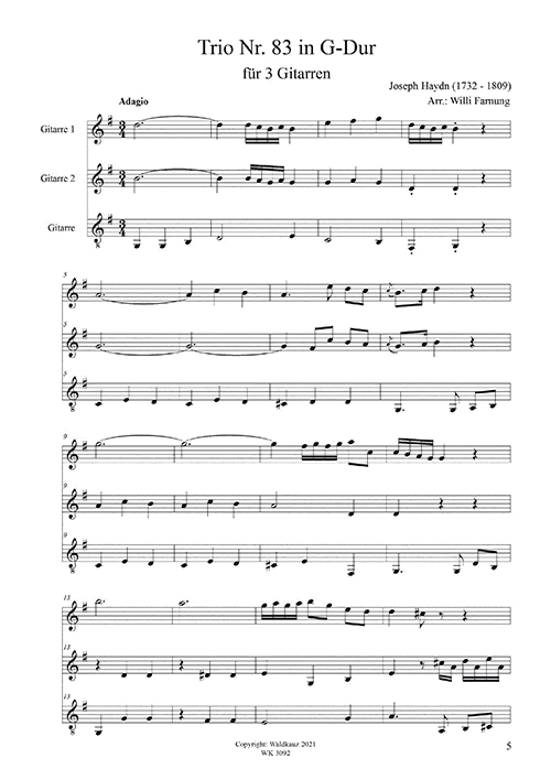 Preview: Haydn, Joseph - Trio Nr. 83 in G-Dur  für 3 Gitarren