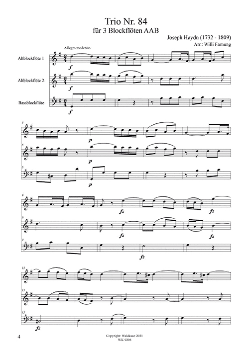 Preview: Haydn, Joseph - Trio Nr. 84 in G-Dur  für 3 Blockflöten (AAB)