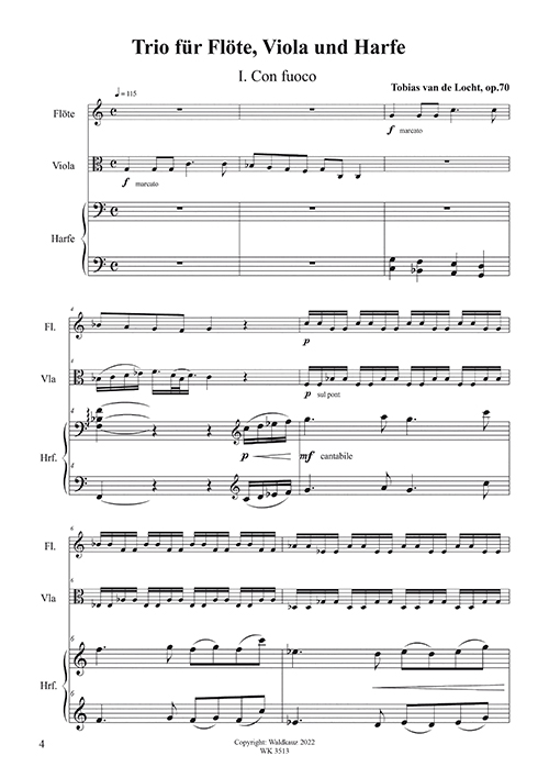 Für Konzertharfe. (statt Viola und auf Violoncello