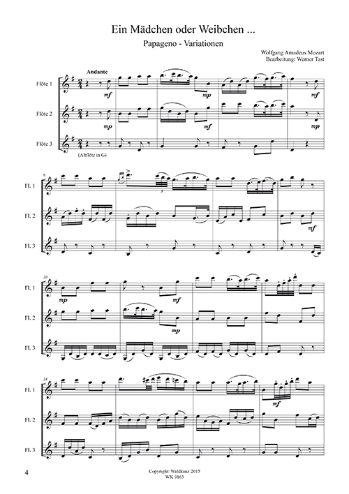 Mobile Preview: Mozart: Arien aus der Zauberflöte - für 2 Flöten + Altflöte