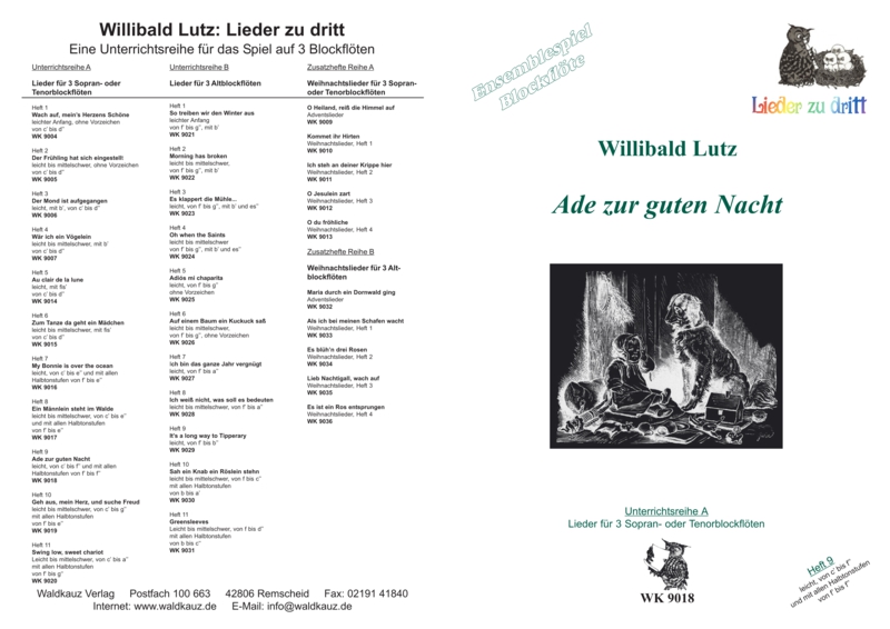 Ade zur guten Nacht - Ensemblespiel BFL - 3 C-Blockflöten, Heft 9