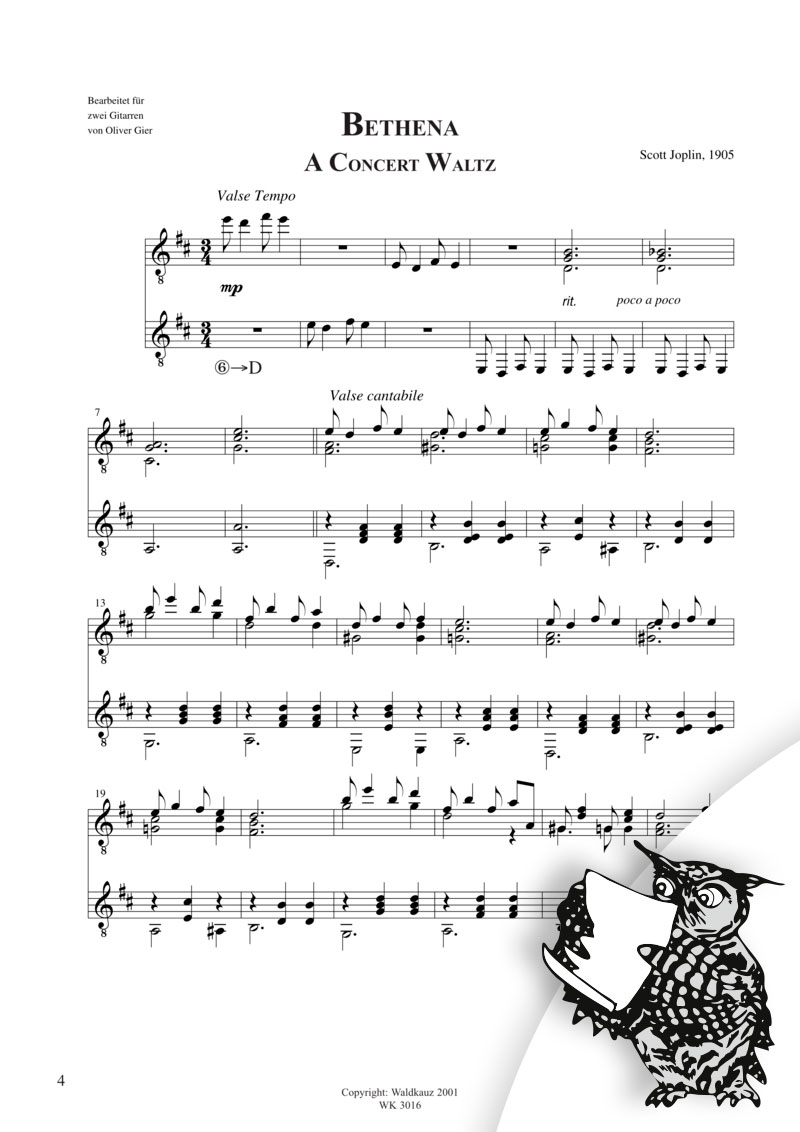 Mobile Preview: Bethena - a concert Waltz - Ragtime Waltz für 2 Gitarren, arr. Oliver Gier