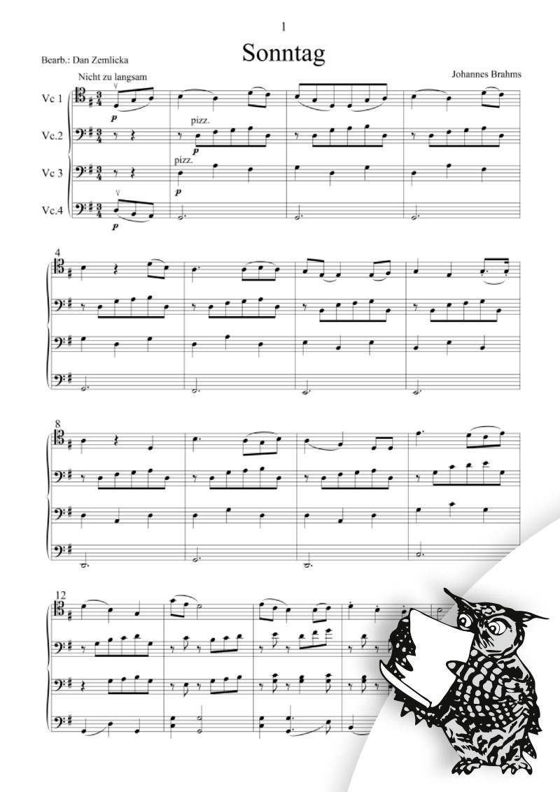 Preview: Brahms, Johannes - Sonntag - für 4 Violoncelli