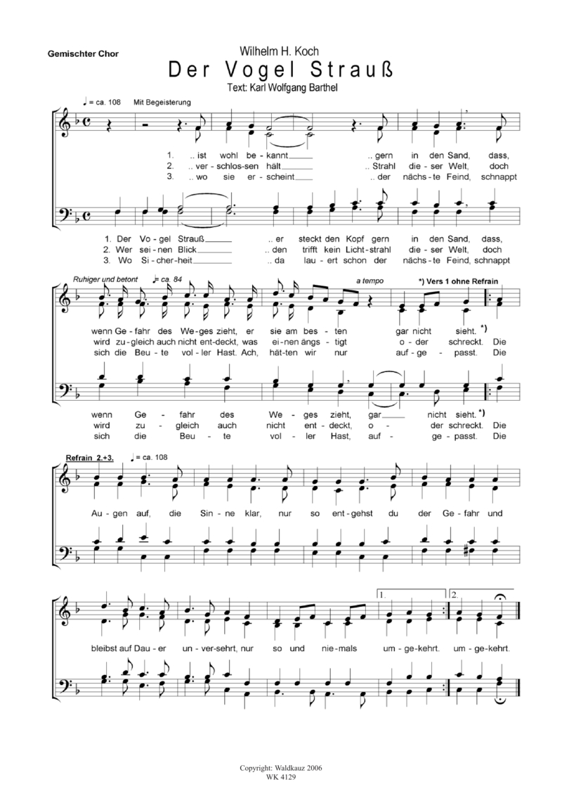 Mobile Preview: Der Vogel Strauss - für Chor SATB a cappella