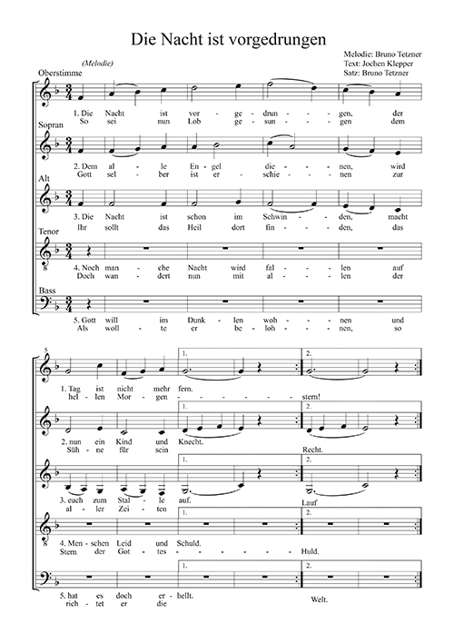 Mobile Preview: Die Nacht ist vorgedrungen - Chor SATB a cappella