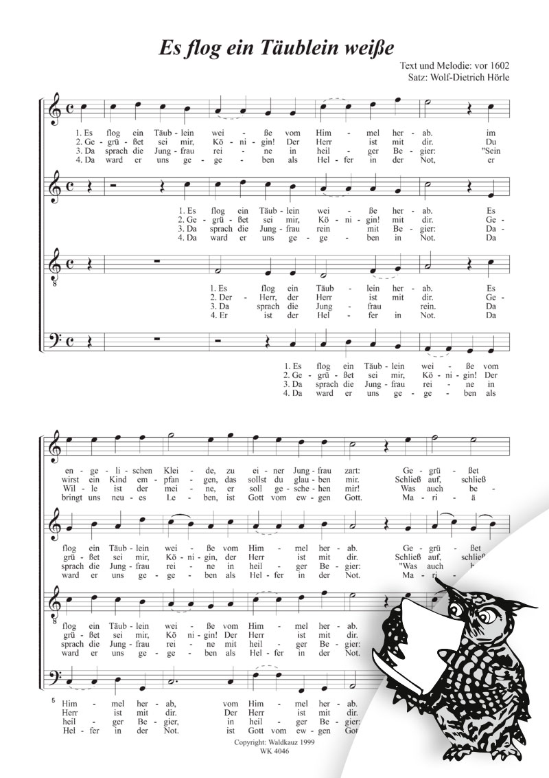 Mobile Preview: Es flog ein Täublein weiße für Chor SATB a cappella