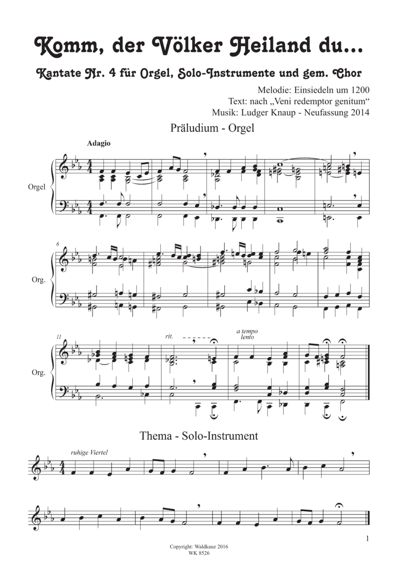 Preview: Komm, der Völker Heiland du - für Orgel, Solo Instrument und gem. Chor SATB