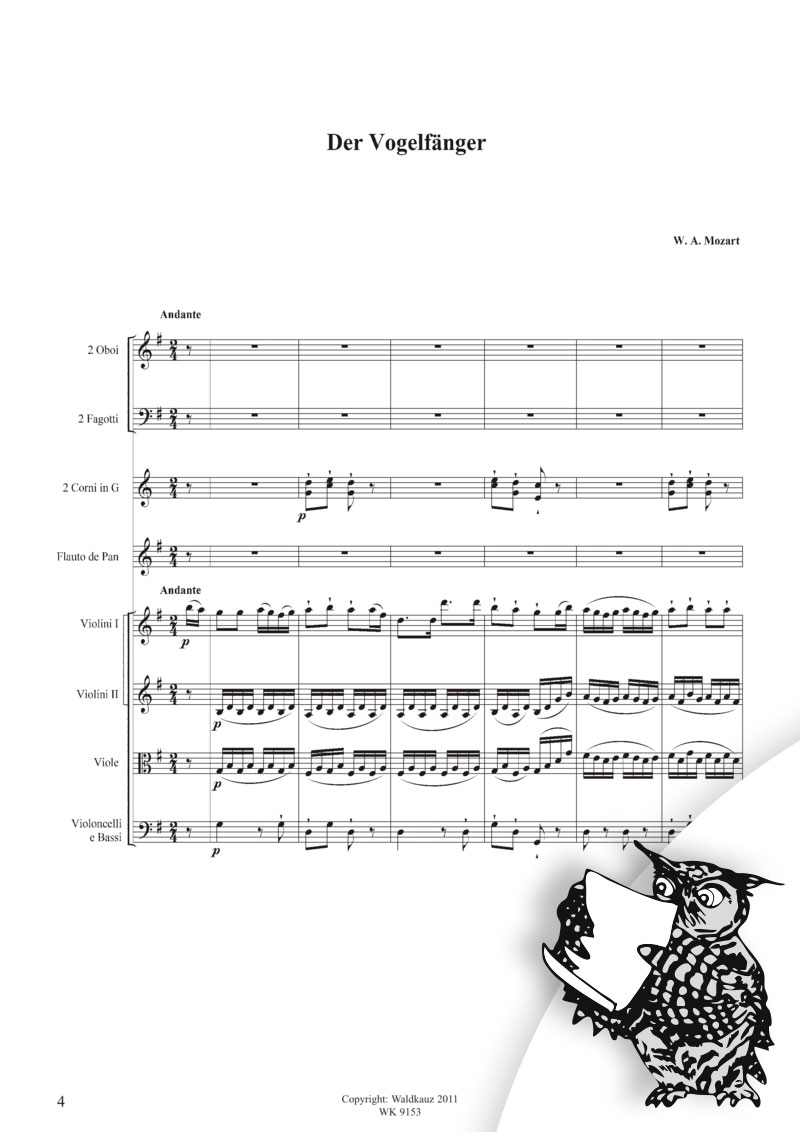 Mobile Preview: Mozart, W. A.: Die Zauberflöte: Der Vogelfänger - für Panflöte und Orchester