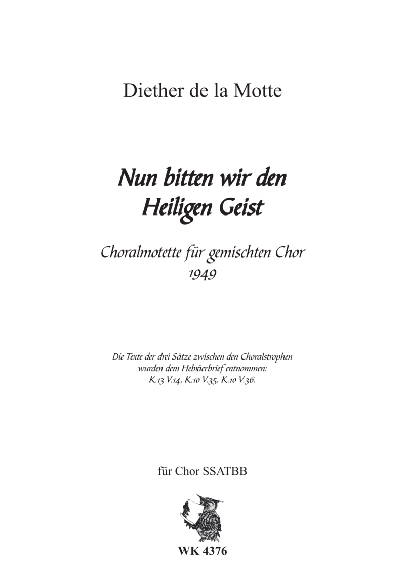 Nun bitten wir den Heiligen Geist - Choralmotette für gemischten Chor