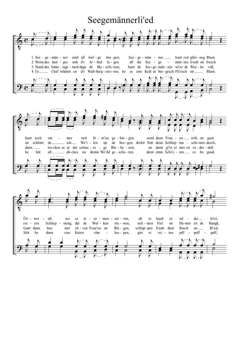 Seegemännerli'ed - für Männerchor TTBB + Klavier