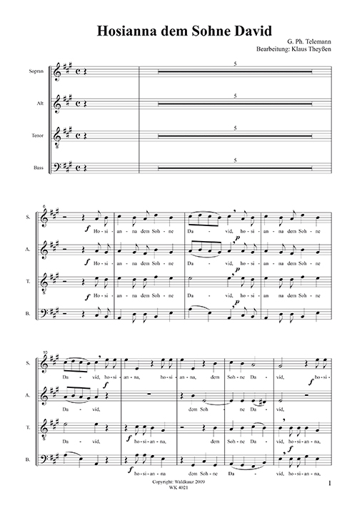 Telemann, G.P.: Hosianna dem Sohne David, Chorpartitur