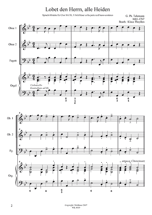 Mobile Preview: Telemann, G.P.: Lobet den Herrn, alle Heiden, Partitur