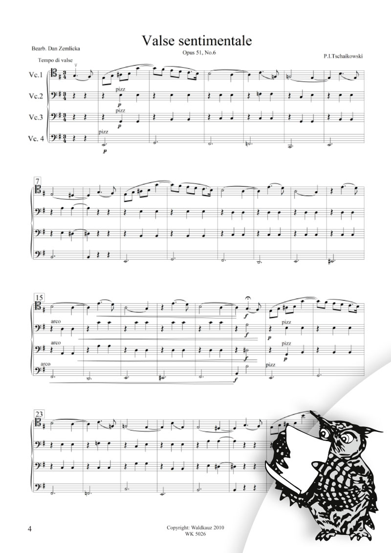 Preview: Tschaikowski, Peter - Valse sentimentale - für 4 Violoncelli