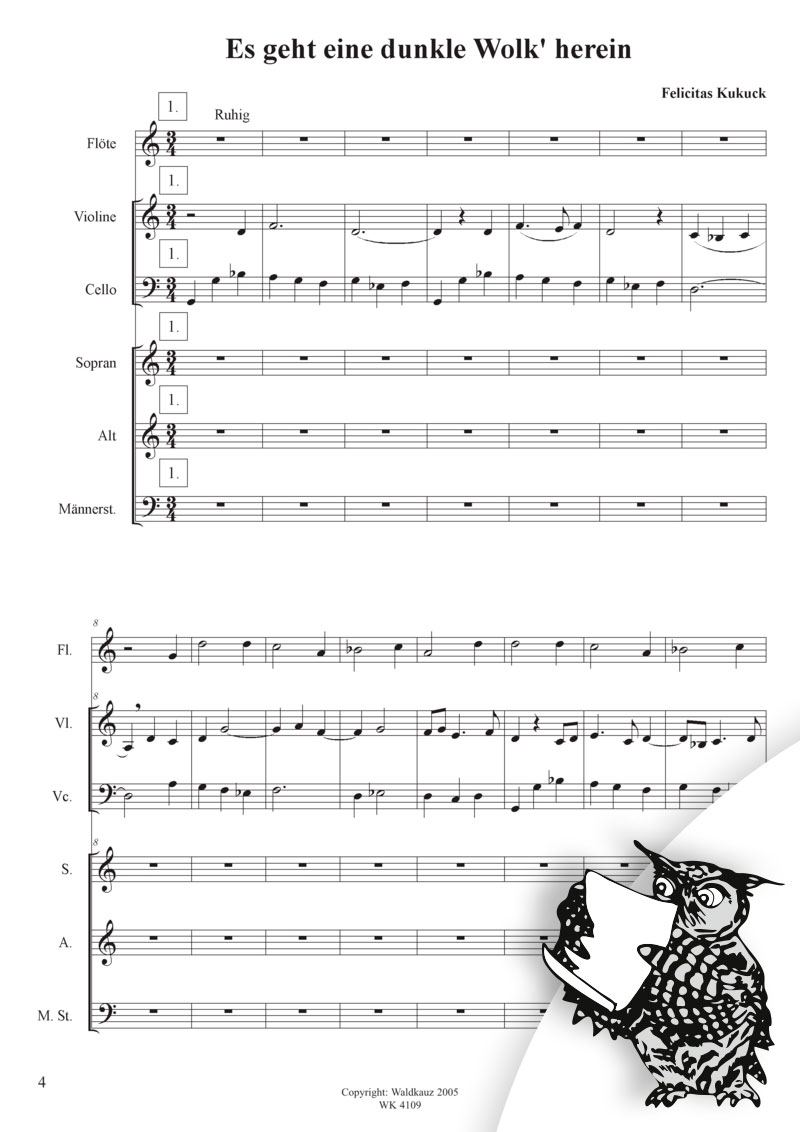 Mobile Preview: Volksliedkantate f. 3st. gem. Chor u. Streicher über "Es geht eine dunkle Wolk herein"