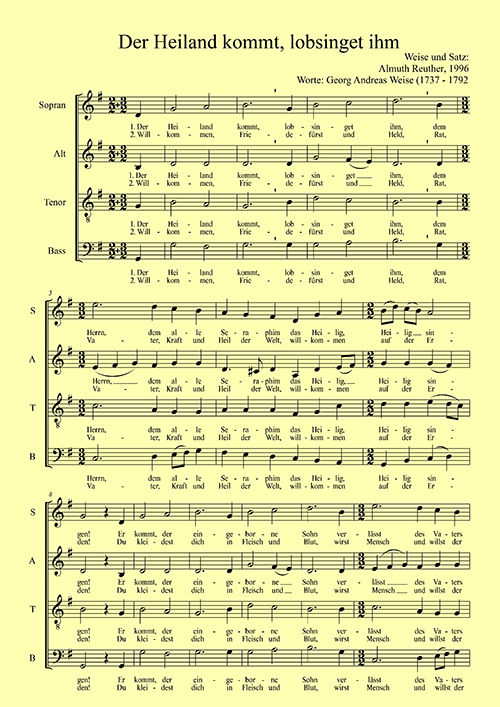 Weihnachtslied - Der Heiland kommt, lobsinget ihm - für Chor SATB a cappella