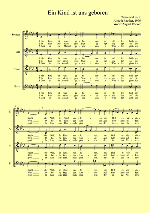 Weihnachtslied - Ein Kind ist uns geboren - für Chor SATB a cappella