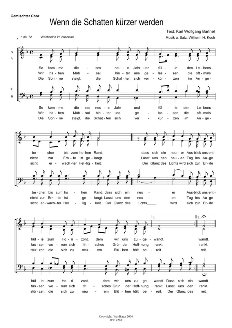 Mobile Preview: Wenn die Schatten kürzer werden - für Chor SATB a cappella
