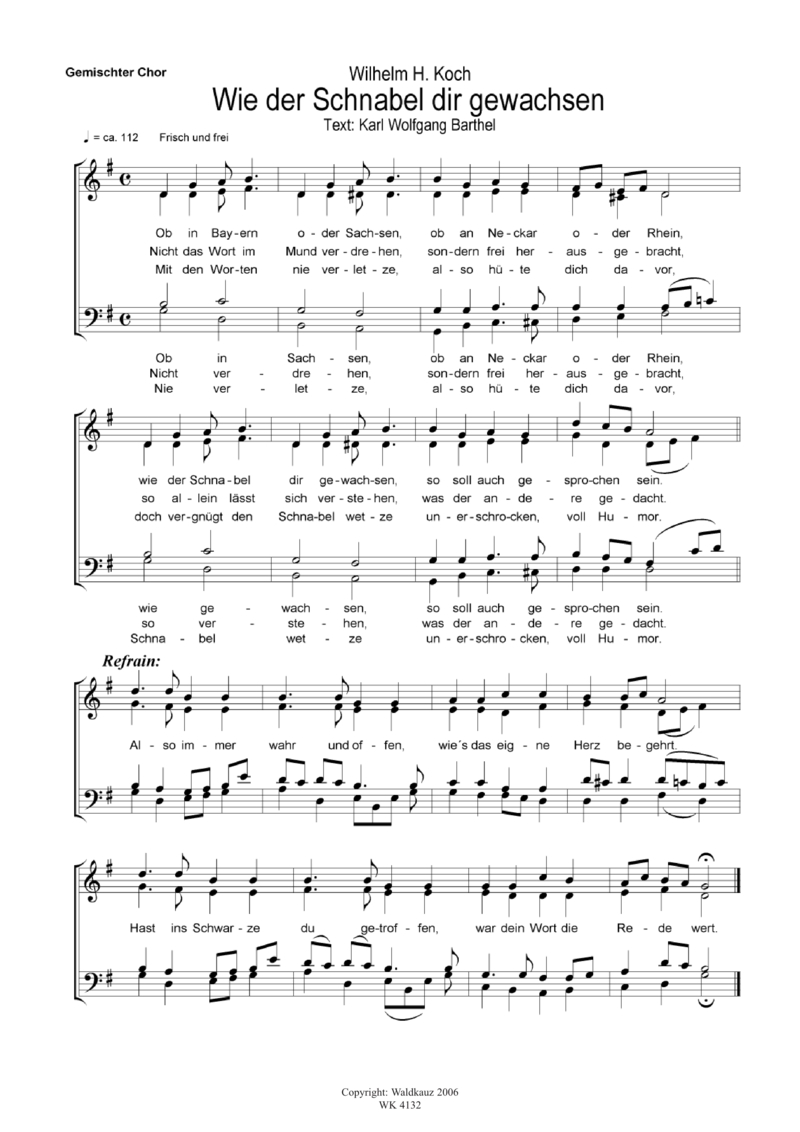 Wie der Schnabel dir gewachsen - für Chor SATB a cappella