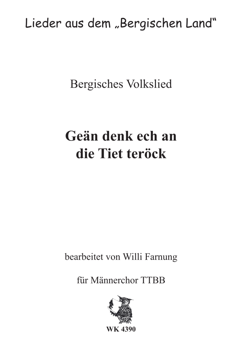 Wittkop, Kaspar - Geän denk ech an die Tiet teröck - für Männerchor TTBB
