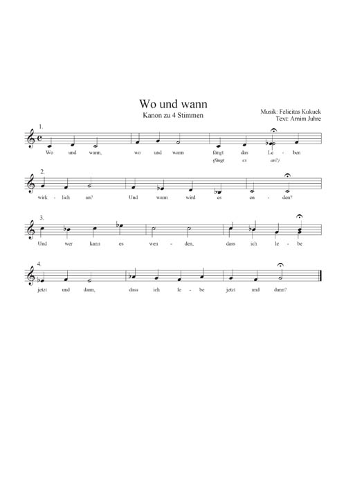 Wo und wann - Kanon zu 4 Stimmen